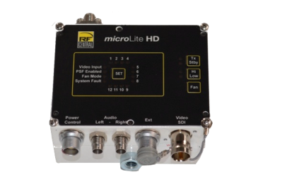 Developed for the new generation of HD capable compact cameras, the RF Central microLite System is available in the 2, 5.8 and 7GHz bands, features superb H.264 SD and HD encoding and operates in the standard 2k DVB-T COFDM mode.